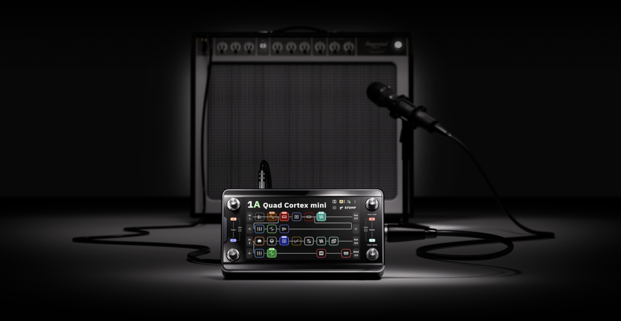 Ce qui démarque immédiatement le Quad Cortex Mini, c’est sa taille : plus de 50 % plus petit que le Quad Cortex original, tout en restant performant sur scène, en studio ou à la maison.