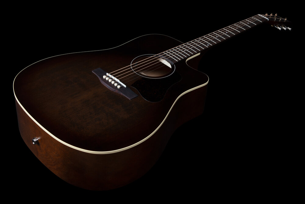 La guitare Americana de style Cutaway, à pan coupé, se veut un excellent choix pour les styles de jeux qui nécessitent un accès aux cases les plus aiguës. Fabriquée à la main, elle offre une incroyable réverbération naturelle avec une belle présence en basses fréquences et une richesse dans les moyennes fréquences. Procurez-vous la dans un fini semi-lustré de couleur Bourbon Burst ou Noir délavé. Elle est équipée d’un système acoustique Godin Q1T avec préampli qui répondra à vos besoins, tant en studio que lors de prestations live!