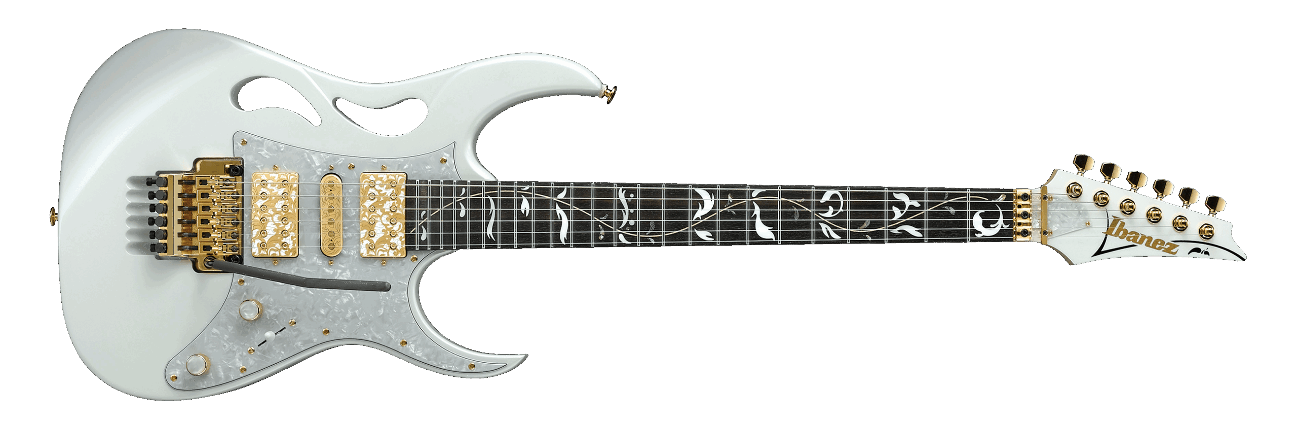 Cette Ibanez PIA3761 Stallion White est l’évolution de la fameuse JEM designée par Steve Vai en collaboration avec Ibanez.