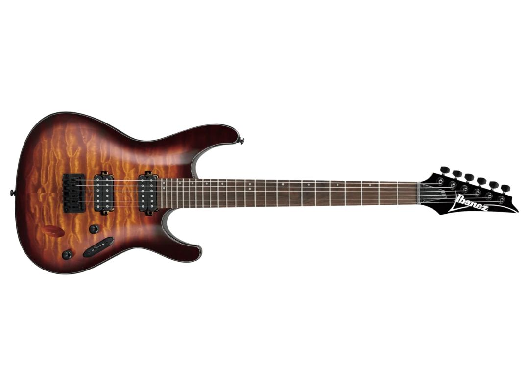 La guitare Ibanez S621QM fait partie de la série S au corps affiné. Elle est dotée d’une table en érable ondé ainsi que de deux micros Ibanez Quantum.
