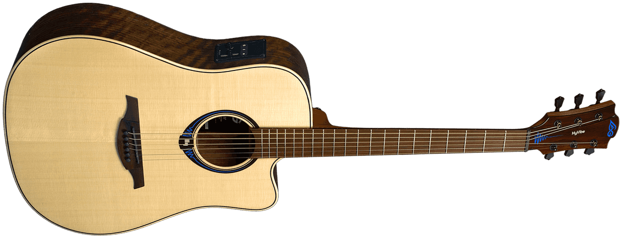 Cette guitare Lag HyVibe THV20 DCE intègre le nouveau système HyVibe, qui est une révolution technologique dans le monde de la guitare acoustique !