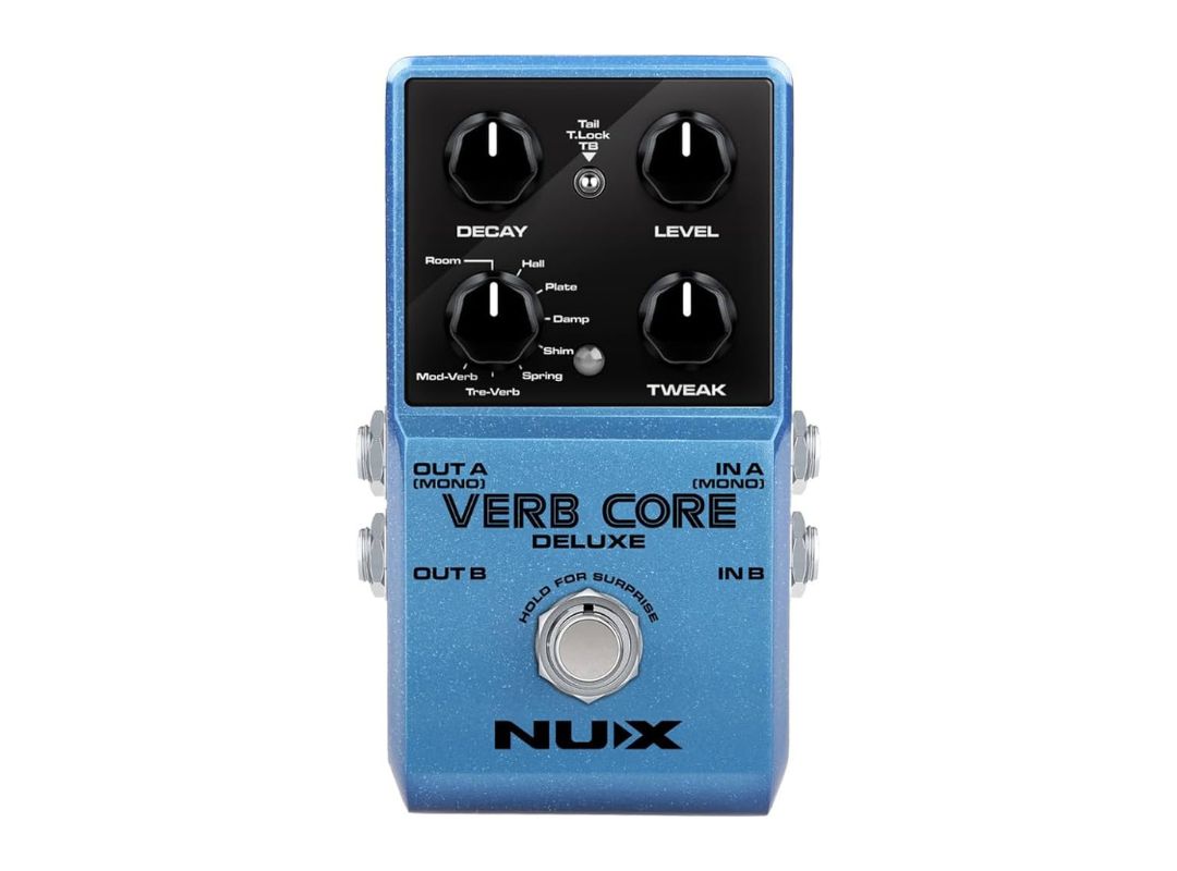 La Nux Verb Core est une pédale de reverb dotée de 8 presets et d’une fonction freeze.