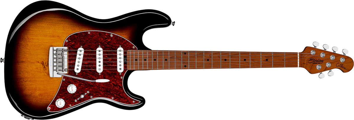 La Sterling Cutlass CT50 est une guitare électrique polyvalente dotée de 3 micros simples bobinages et d’un vibrato deux points.